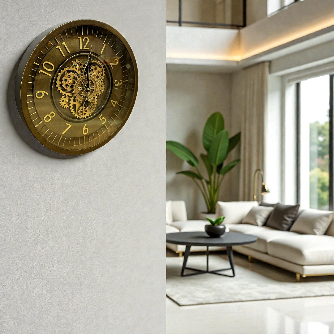 Bu duvar saati, yüksek kaliteli malzemeler kullanılarak üretilmiştir. Çarklı tasarımı, saat mekanizmasının estetik bir şekilde sergilendiği şeffaf bir yapıya sahiptir. Metal ve cam karışımından oluşan gövdesi, hem dayanıklıdır hem de modern bir görünüm sağlar. Saatin kadranı minimalist bir tasarıma sahipken, büyük ve okunaklı rakamları sayesinde zamanı kolayca takip etmenizi sağlar.